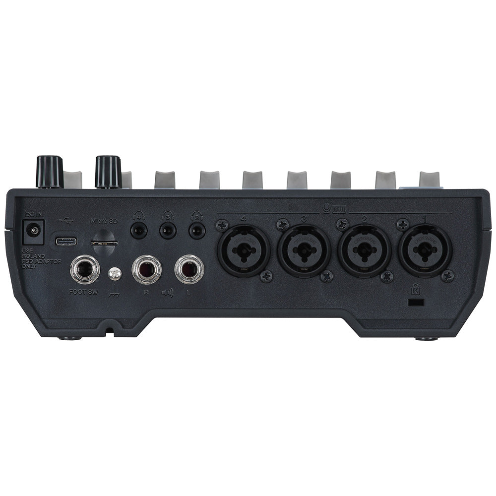 • Connectors: Guitar jack: 1/4-inch phone type, Channel 1-4 jacks: Combo type (XLR, 1/4-inch TRS phone), balanced, Mobile jack: Stereo miniature phone type (CTIA), MAIN OUT (L, R) jacks: 1/4-inch phone type, Headphone 1 jack: Stereo miniature phone type (CTIA), Headphone 2-4 jacks: Stereo miniature phone type, FOOT SW jack: 1/4-inch TRS phone type, USB port: USB type-C(R), DC IN jack