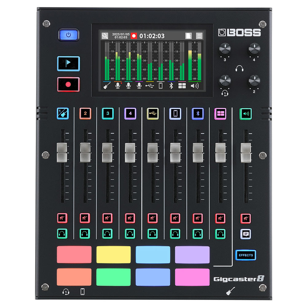 Gigcaster 8 is a powerful all-in-one audio command center purpose-built for musicians who livestream and create audio and video content. It delivers all the tools you need for professional sound in a single desktop interface, along with quick-access live control via faders, knobs, eight assignable pads, and a vivid color touchscreen.