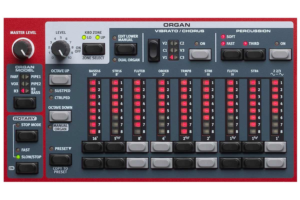 - B3 Tonewheel, B3 Bass, Vox and Farfisa simulations