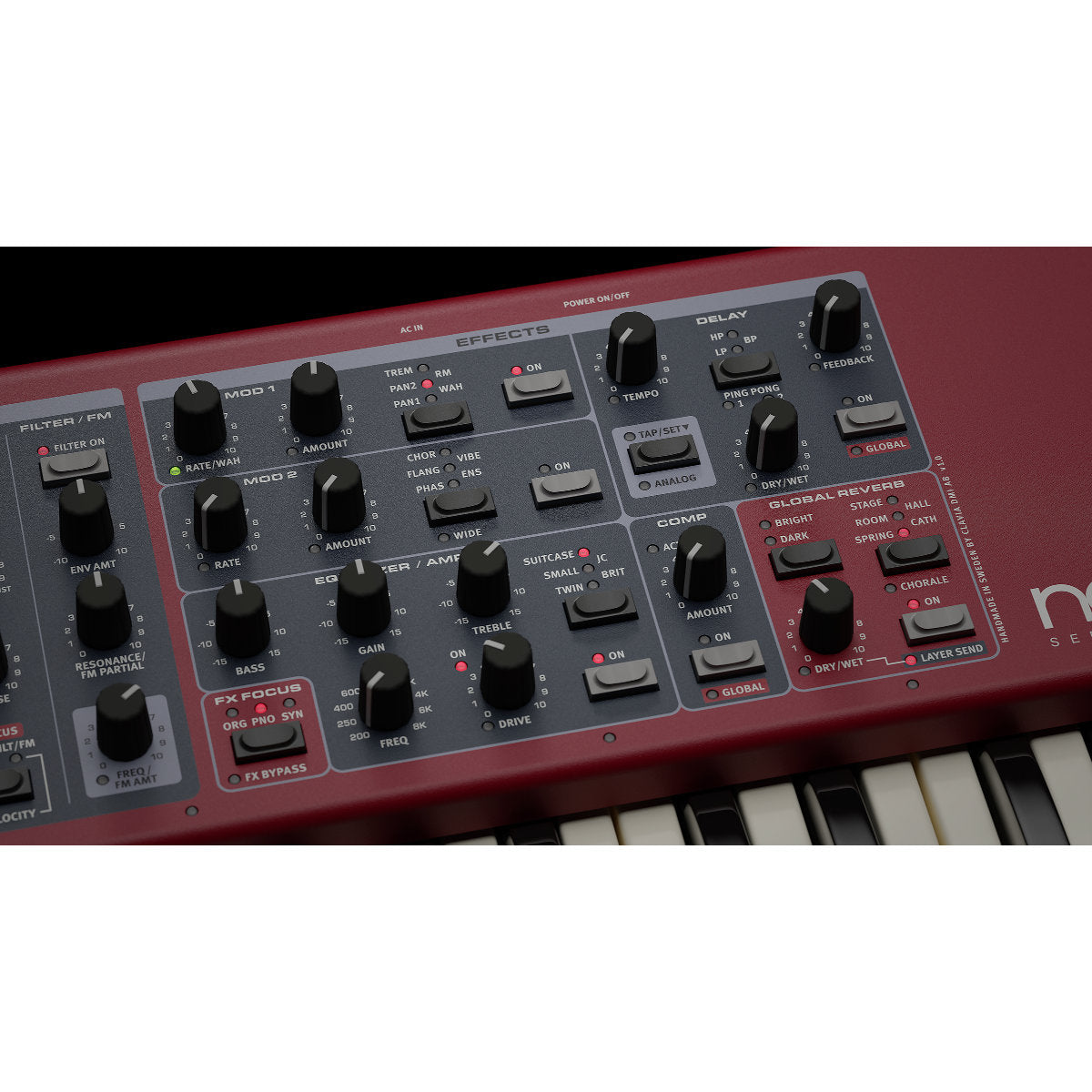 The Nord Electro 7 has an expanded new Effects section per Layer. The wide range of Effects includes brand new types of Reverb, Delay, Amps and Modulation effects.