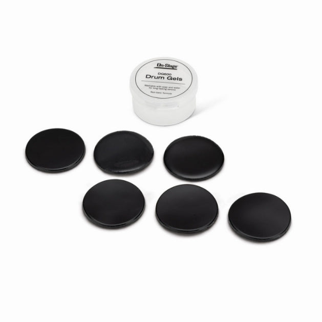Get just the right drum sound with the DG600 Drum Gels. By placing a gel or multiple gels in various locations on a drum head, different resonances can be controlled to refine and alter a drum's tone and dampen excessive ringing. Made using a nontoxic formula for safe handling, these self-adhering gels are easy to apply, reposition, and remove without leaving residue. Reusable many times, their stickiness can be maintained simply by washing them with soap and water when necessary. This pack includes six gels and a canister that keeps them clean and protected during transportation.