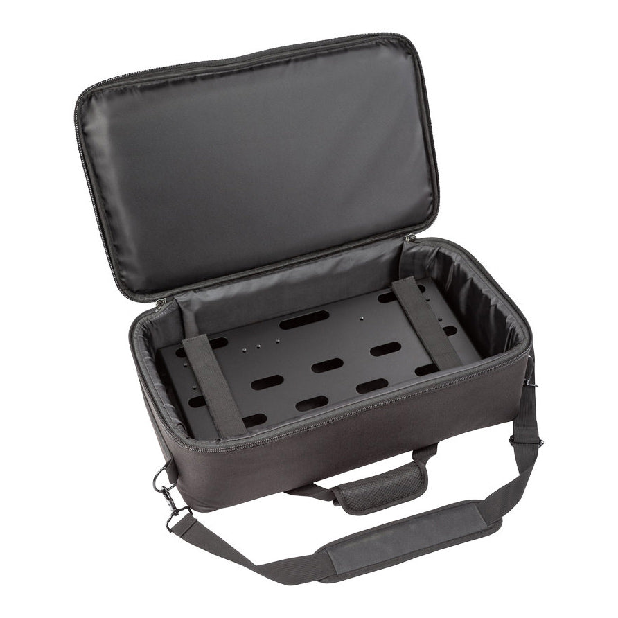 Dingbat SMALL-EX includes a heavy-duty tour-grade soft case that meets carry-on requirements for all commercial airlines. No bag checking required. Premium materials and construction ensure superior performance and long-lasting protection for your pedalboard. A removable shoulder strap is included for easy transportation.