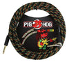 Pig Hog Vintage Woven Instrument Cable, Rasta Stripes, Right Angle - 20 ft.