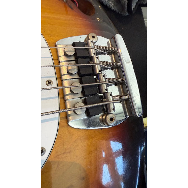 This bass is a Pre-Ernie Ball Vintage 1970s Music Man Sting Ray in classic Vintage Sunburst finish. Known for its powerful sound, this bass features all the classic characteristics of the Pre-Ernie Ball 70s models, including a vintage humbucker pickup, 3-bolt neck plate, non-contoured slab body, and two-band active EQ. This Bass is in Good Condition. A Hardshell Case is Included.