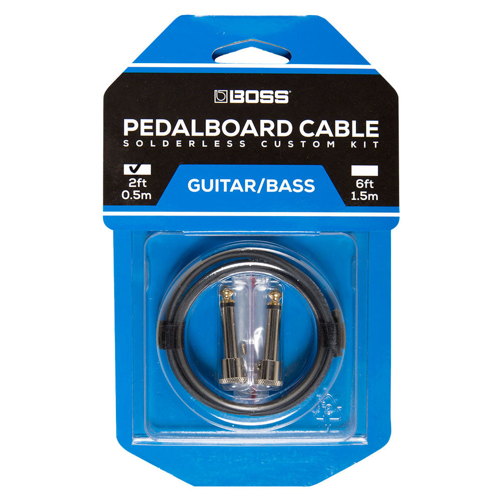 The BOSS Solderless Pedalboard Cable Kit is designed to save space on your pedalboard without sacrificing tone. Easy to assemble, this customizable system requires only the tightening of a single ground screw on each connector, with no cable stripping required. Our compact bi-directional connectors are engineered to allow straight or right-angle connections, and enable you to place your pedals as close as 1 cm apart.