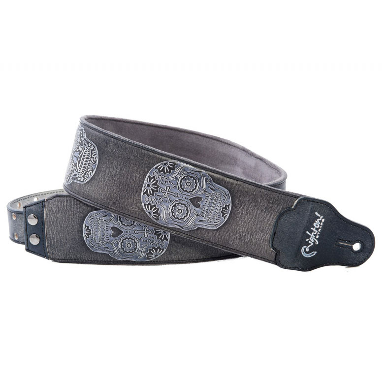 Right On! Leathercraft Sugar Skull 2.75 in. Guitar Strap - Black