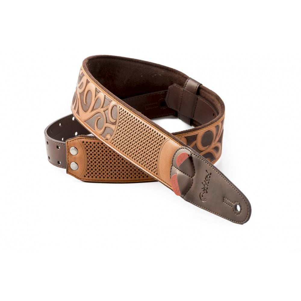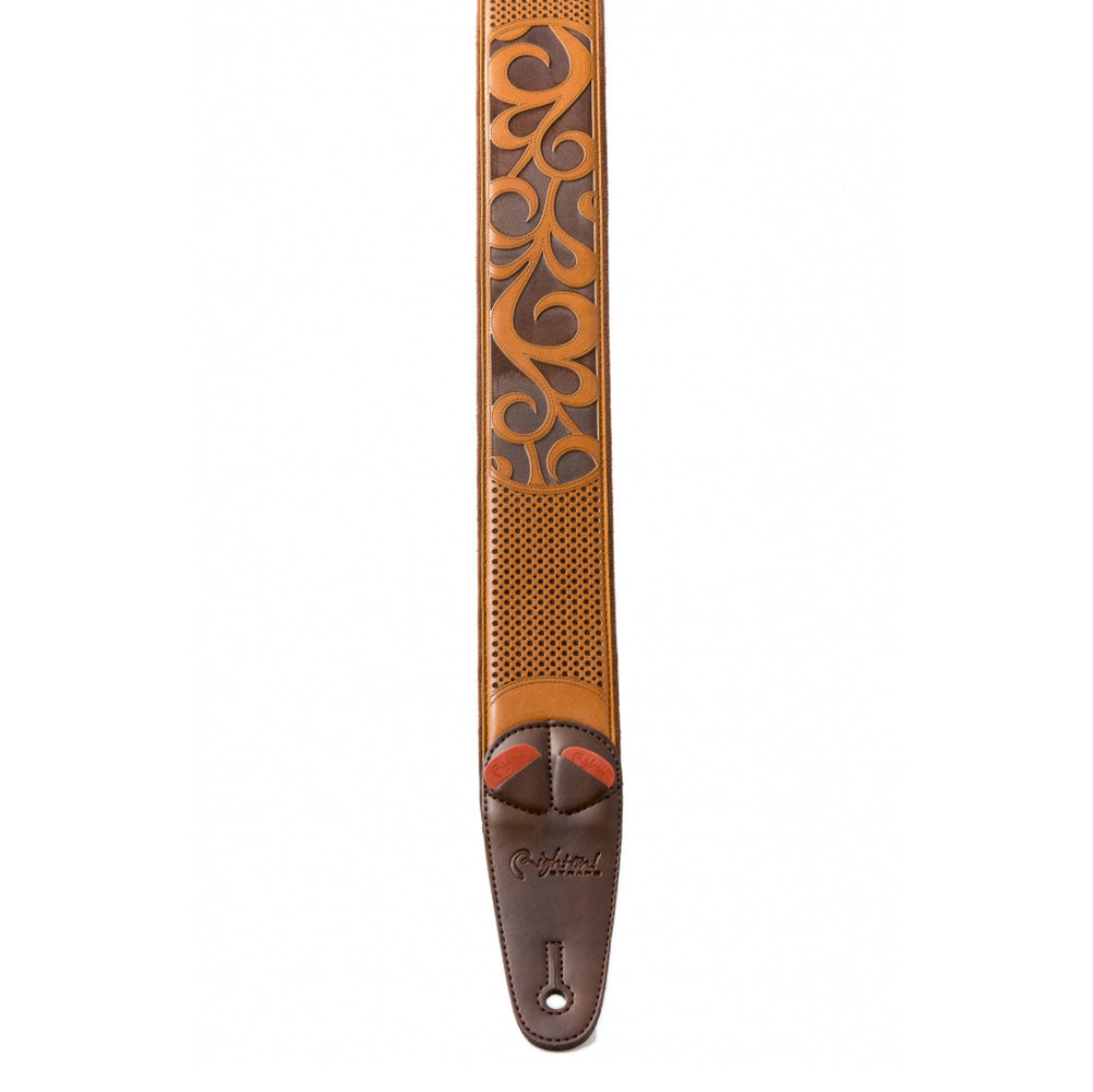 The Nashville guitar strap has a surface reminiscent of old engravings, or the cowboy boots, It´s a strap for adventure. This strap evokes the strength and persistence over time, and get it because is made it with high quality materials.