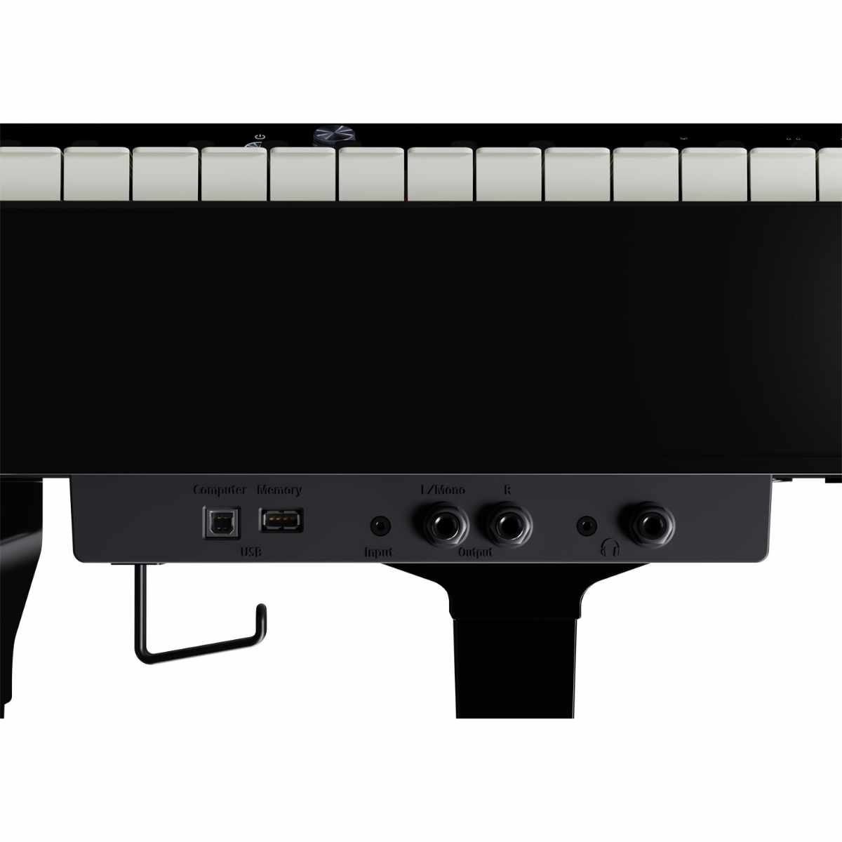 - Hybrid Grand keyboard with progressive hammer action, escapement, hybrid wood/molded keys with Ivory Feel, long key pivot length, and unique haptic vibration