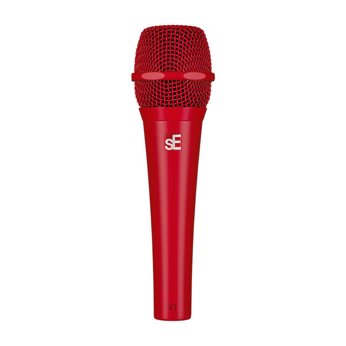 The V7 RED is a color variant of sE Electronics' awarded V7, a dynamic vocal hand-held microphone with a supercardioid polar pattern. The spicy looking V7 RED delivers a crisp, open sound that perfectly captures your voice and instruments in the most natural way you've ever heard on stage while offering vast amounts of gain-before-feedback.
