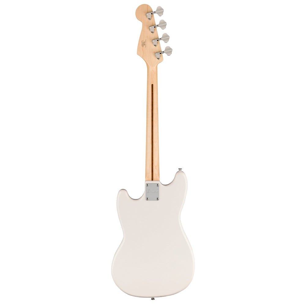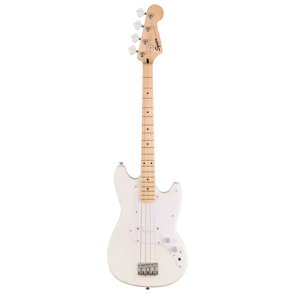 The Squier Sonic® Bronco® Bass is ready to launch any musical adventure into warp speed, offering iconic Fender® style and inspiring tone for players at any stage. This Bronco Bass sports a slim and inviting "C"-shaped neck profile with a narrow 1.5 in. nut width and a thin, lightweight body for optimal playing comfort while a Squier® single-coil pickup delivers punchy bass tone. Further details of this model include a short 30 in. scale length, 4-saddle hardtail bridge for precise intonation adjustment, sealed-gear tuning machines for smooth, accurate tuning and durable chrome-plated hardware that is sure to catch the spotlight.