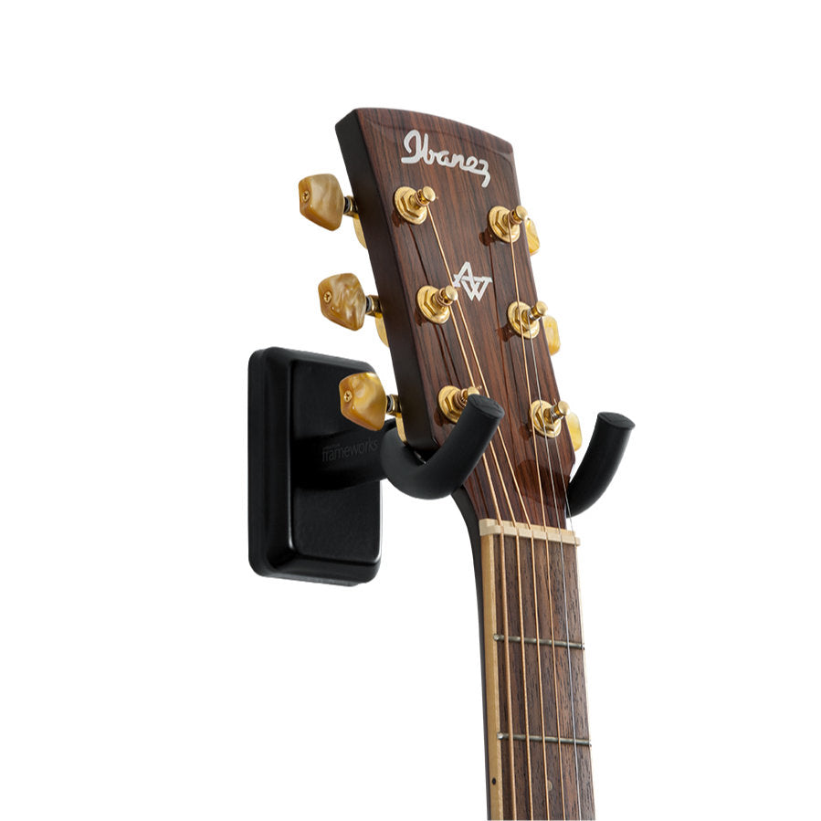 Frameworks Wall Mounted Guitar Hanger with Black Mounting Plate.