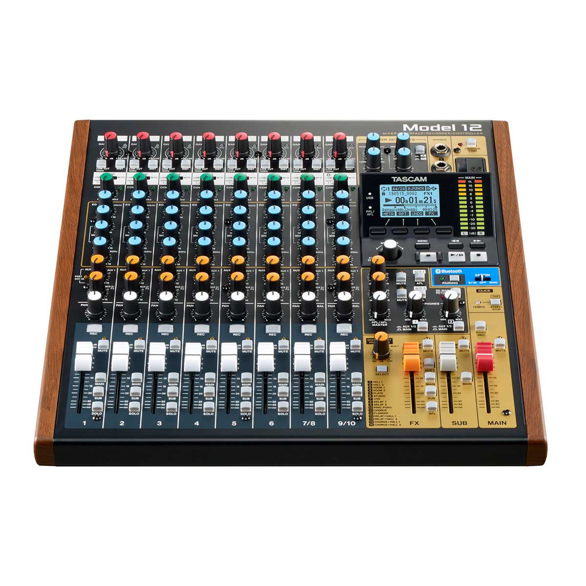 TASCAM's Model 12 is a compact all-in-one integrated mixer designed for music and multimedia creators, songwriters and performers. Features include TASCAM's critically acclaimed multi-track recorder, USB audio/MIDI interface, DAW control functions, and unique podcasting capability including mix-minus and smartphone inputs. The Model 12 supports your creative process, production, and workflow from start to finish including podcasting.