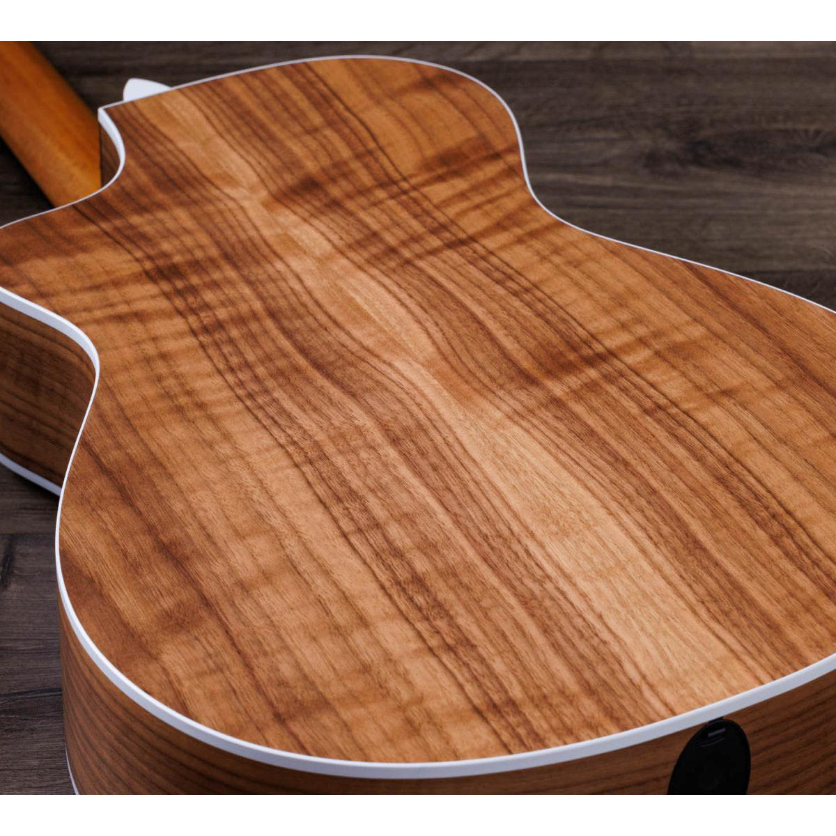 Torrefied Spruce Top Wood: By far the most popular and common wood used for acoustic guitar tops, spruce has a long heritage in the music world. In typical Taylor style, Taylor developed their signature recipe for a process called “torrefaction” to make spruce sound even richer and more sophisticated, adding a new dimension to this much-loved wood.