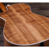 Sound: Another beautiful hardwood, walnut has a similar density and stiffness to koa, with a similar tightness initially. Like koa, it tends to have a bright top end, but with a more present midrange, somewhere between mahogany and rosewood. Walnut also starts off a little deeper on the low end, initially giving it a slightly woodier sound than koa. The low end will continue to fill out after being played in.