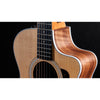 Grand Concert Body: The small-body Grand Concert debuted in 1984 to meet the needs of a new wave of adventurous acoustic fingerstyle players. In contrast to the traditionally darker, boomier voices of bigger body styles like dreadnoughts and jumbos, the GC’s compact size and tapered waist kept the overtones in check. It was also more comfortable to play while sitting down, and the guitar’s slightly wider neck gave players more room for complex fingerings. The GC’s smaller sonic footprint also fit cleanly in a mix with other instruments when tracking in the studio and with a band on stage, making it a useful tool for professional session and side players. Taylor's current generation of GC models continues to accommodate fingerstylists with finger-friendly traits like a shorter 24 7/8-inch scale length, which makes fretting easier and adds a slightly slinkier feel on the strings due to the lighter string tension. If you feel more comfortable with a small body or favor controlled overtones, a Grand Concert is a great option.