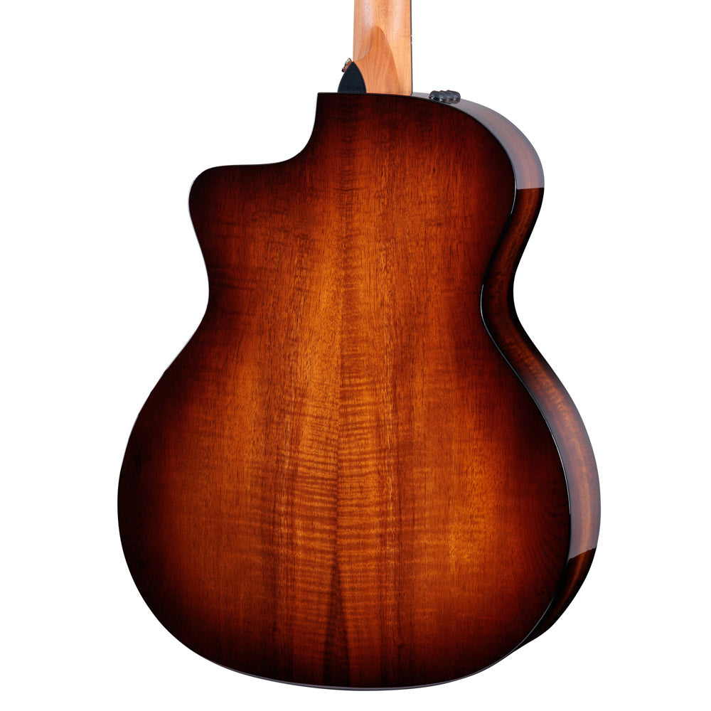 With its aesthetic beauty and musical sparkle, it's no wonder players love Hawaiian koa. In the 214ce-K SB Plus, layered koa back and sides pair with a solid Sitka spruce top, generating clear power and sonic definition for a tone profile that adapts easily across genres and playing styles. The slender Taylor Neck makes holding strings easy on your fingers, while the Grand Auditorium body offers a comfortable feel whether you play seated or standing. This stylish model is capped off with a stunning shaded edgeburst finish, , and comes with ES2 electronics built-in, and a Deluxe Aero case.