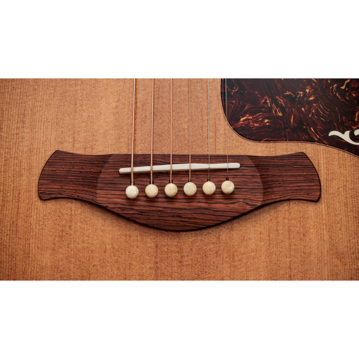 An undersaddle pickup similar to Taylor’s proprietary ES2 electronics, the Element system utilizes an ultra-thin sensor that minimizes the effect of string pressure and vibration on its tonal output, instead detecting sound from the movement of the guitar’s top. This results in a clear, warm voice that channels exceptional detail while dialing down the treble-range edge that players often associate with acoustic electronics.
