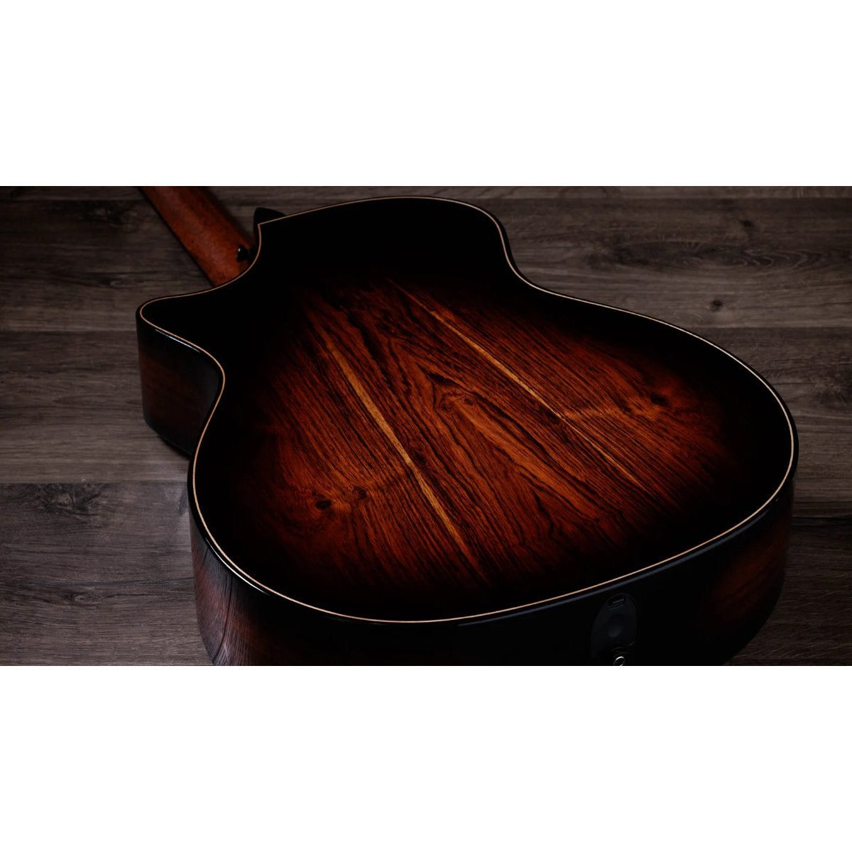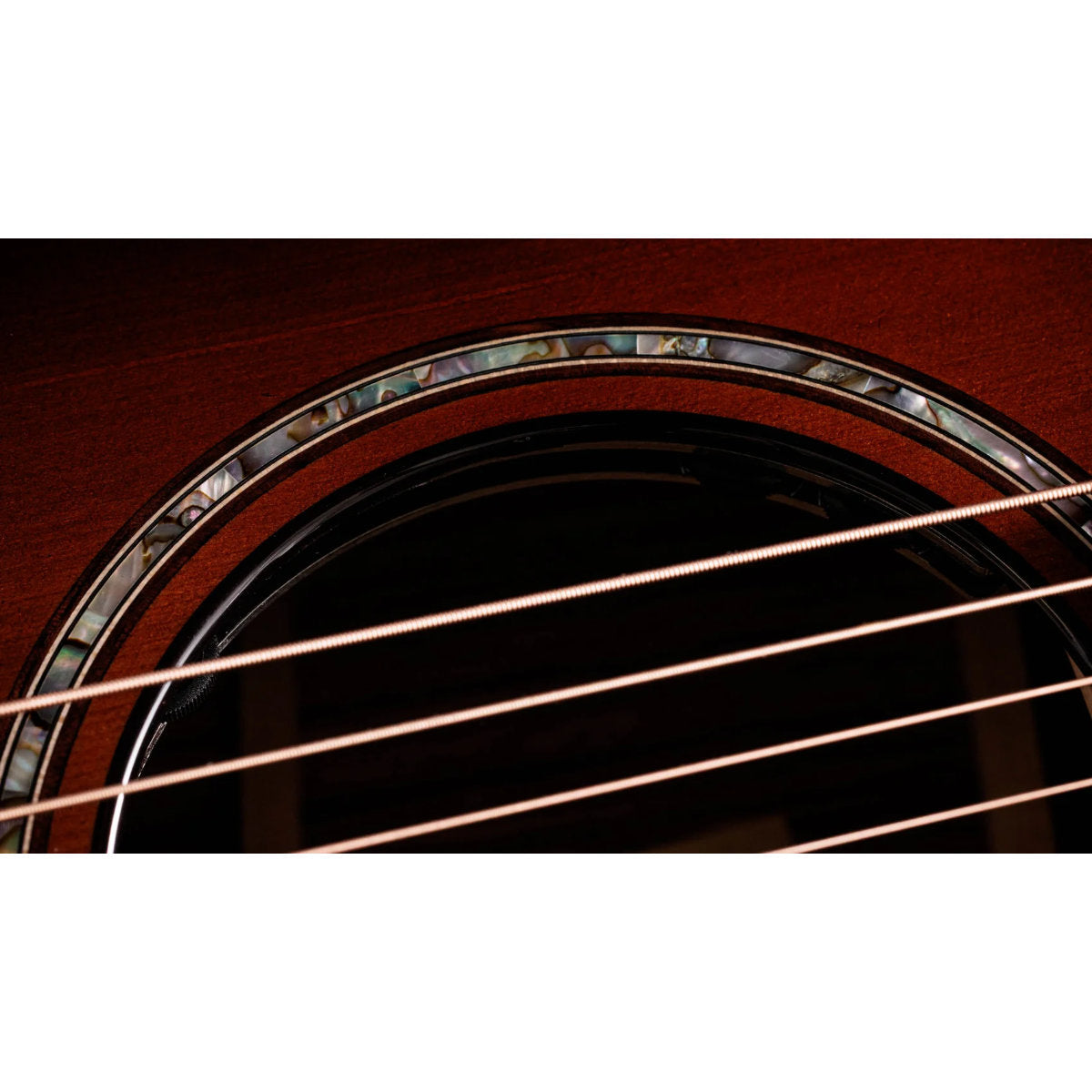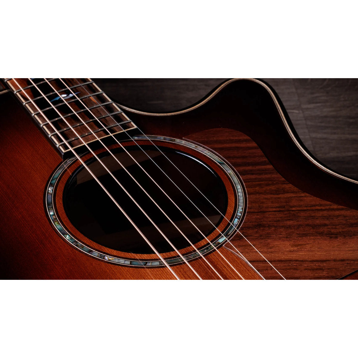 Thoughtfully contoured with player-focused design elements and crafted with exceptional tonewoods, this Builder's Edition 814ce takes Taylor's flagship Grand Auditorium to new heights of sound and feel. A beautiful sinker redwood top paired with back and sides of Honduran rosewood deliver rich overtones and stunning low-end presence, all with improved power and sustain from a new scalloped variant of Taylor's V-Class bracing architecture. Thanks to the new Action Control Neck, players can dial in the perfect feel for any playing style in minutes, while Taylor's Claria pickup and preamp produce remarkably faithful, adaptable amplified tone for all scenarios without the need for significant fine-tuning. Chamfered body edges, a Curve Wing bridge, and a beveled armrest and cutaway add up to unmatched playing comfort, while Gotoh 510 tuners in antique gold, Element fretboard inlays in shell ad mother of pearl, and a glossy shaded edgeburst finish round out the package.