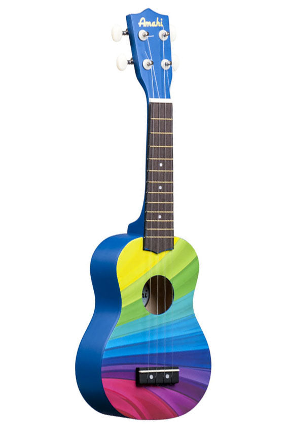 Amahi DDUK10 Soprano Ukulele with Wavy Rainbow Design