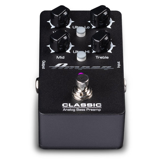 The Ampeg Classic Analog Bass Preamp pedal provides key tones of an array of classic Ampeg amps. The 3-band tone stack and accompanying Ultra-Hi and Ultra-Lo circuits are effective and efficient partners in dialing up pro-quality Ampeg tone.
