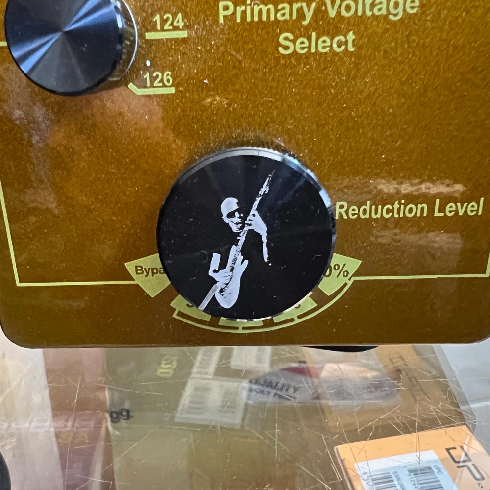 The AmpRx BrownBox is an adjustable AC power supply for your amp or tube gear that helps you run your equipment at the optimal voltage. Plug the BrownBox into the wall, adjust the voltage, and then plug your gear into the BrownBox.