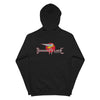 This hoodie features Direct-to-Garment printed Bananas at Large Retro Logos, small on the front and large on the back.
