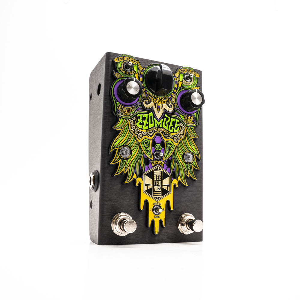 Its unbeeliavable analog tones are enhanced by an innovative way of ramping and controlling modulation movements that uses a momentary footswitch in the most musical ways. These controls make the pedal an extension of your instrument, beecoming an essential tool to expand your creativity. The sounds found in the Zzombee are very unique and would require a very complex rig to be recreated. Thats because the instrument signal gets a 4 stage gain buzz selection and runs in parallel to a monophonic low octave beeast, in the most beetronical style.