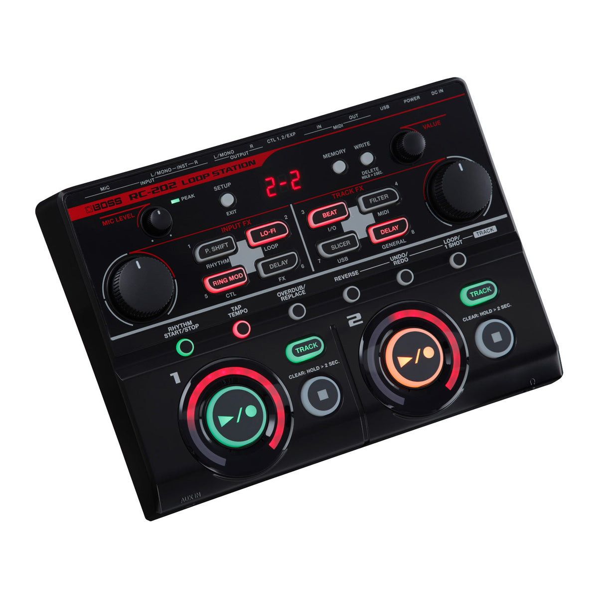 Perfect for club performers, electronic musicians, and beatboxers, the RC-202 packs powerful BOSS looping and multi-effects in an amazingly compact tabletop unit. Based on the popular RC-505 Loop Station, the two-track RC-202 offers the distinctive look and fingertip interface style of its big brother, plus a host of new features. Four Input FX and four Track FX are available at once, and loops can be saved to memories in real time for seamless creative expression while performing. Expanded foot control and MIDI capabilities are also included, ideal for looping musicians who have their hands occupied with guitar, keyboards, and other instruments.