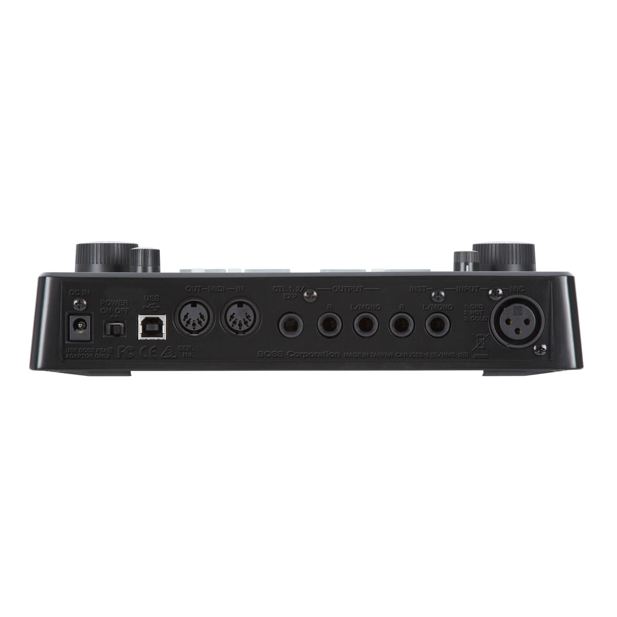 - Connectors: INPUT MIC jack: XLR type (balanced, phantom power: DC 48 V, 10 mA Max), INPUT INST (L/MONO, R) jacks: 1/4-inch phone type, AUX IN jack: Stereo miniature phone type, Phones jack: Stereo miniature phone type, OUTPUT (L/MONO, R) jacks: 1/4-inch phone type, CTL 1, 2/EXP jack: 1/4-inch TRS phone type, USB port: USB B Type, MIDI (IN, OUT) connectors, DC IN jack