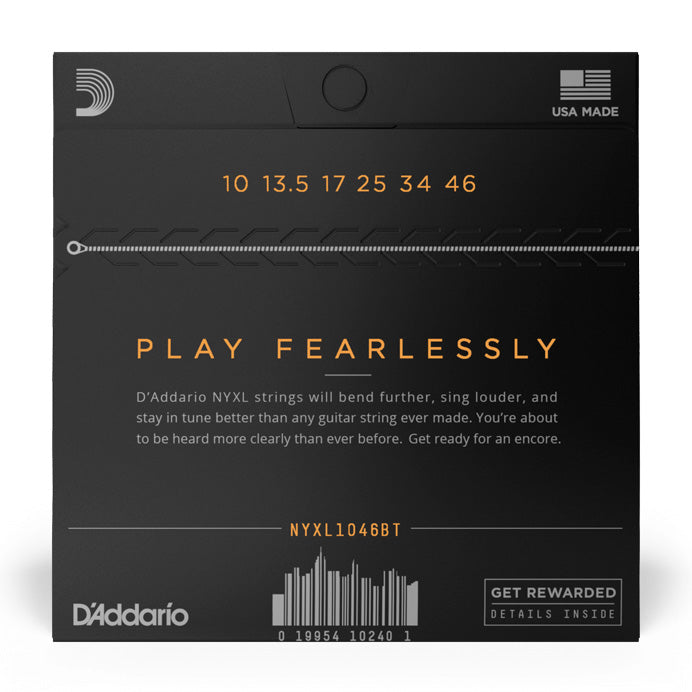 The balanced tension profile of NYXL1046BT creates an even response across all strings in the set when bending, strumming, fretting, and picking. The high carbon steel used in NYXL strings offers higher break strength, enhanced tuning stability, and accentuated mid-range frequency response.