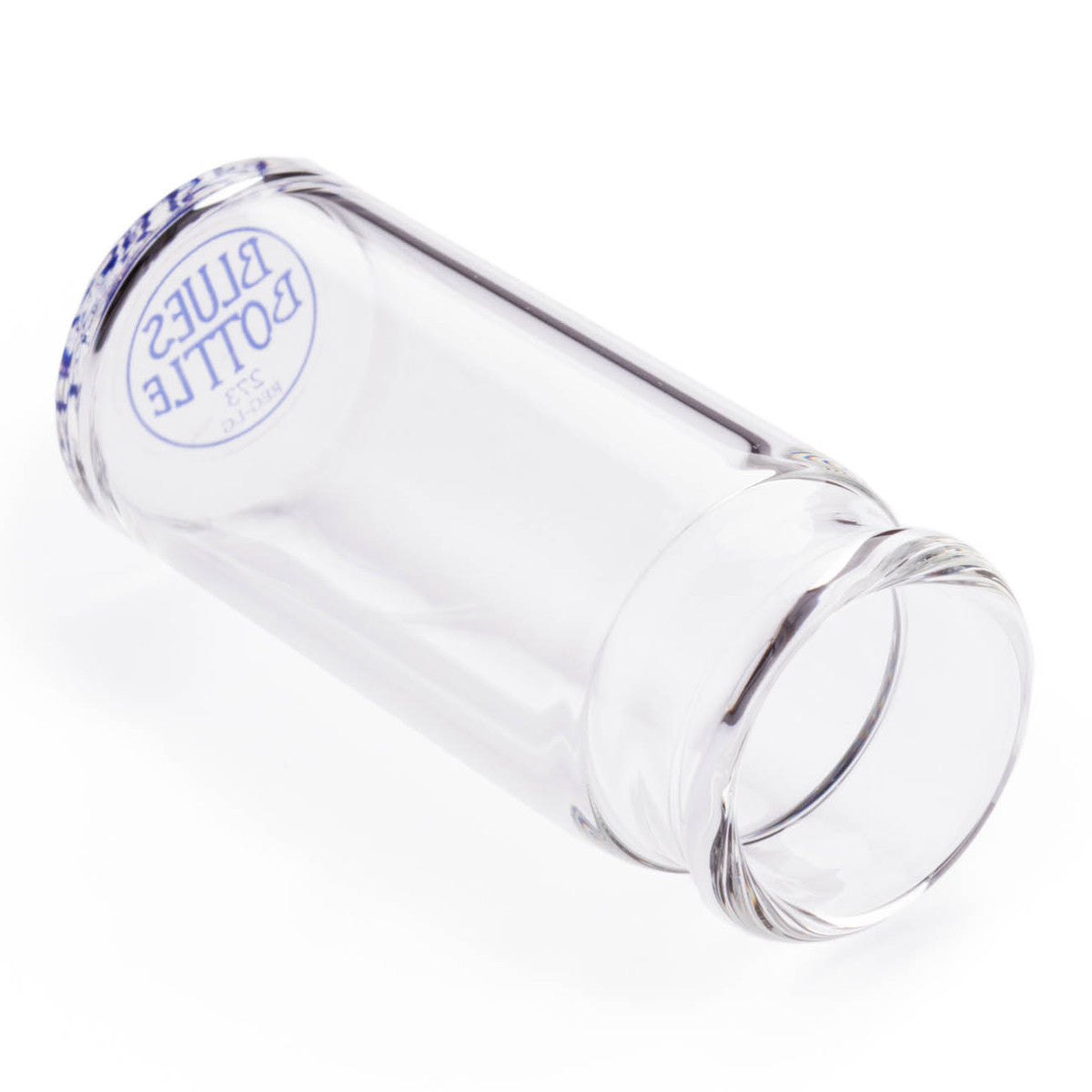This glass medicine bottle slide provides a crisp, bright tone, featuring a closed, weighted end for balance, regular wall thickness, and a large diameter.