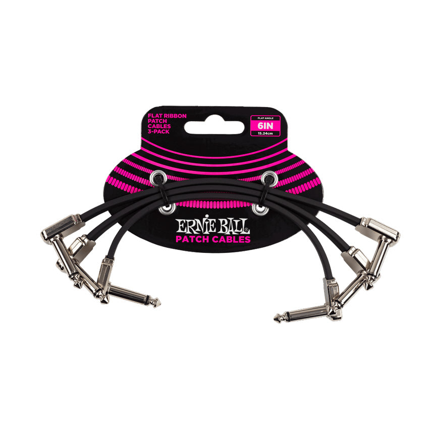 Ernie Ball P06221 Flat Ribbon Angle to Angle Patch Cable - 3-Pack - 6 in.