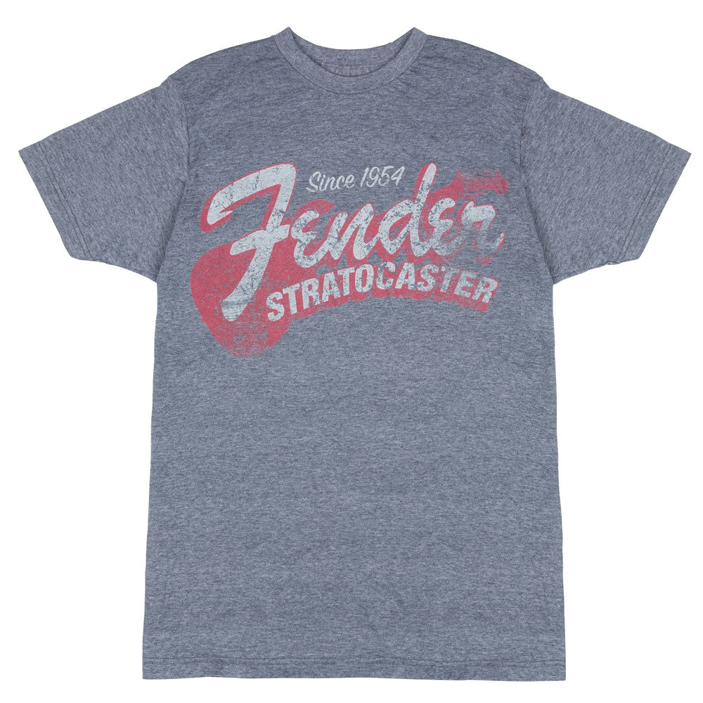 The Fender Stratocaster has moved the musical landscape for more than 60 years. Commemorate your allegiance to the world's most recognizable guitar with a T-shirt that speaks to that rich legacy. This dark blue tee keeps the Stratocaster's old-school vibe alive with a distressed look and a classic faded "Fender Stratocaster" insignia on the front.