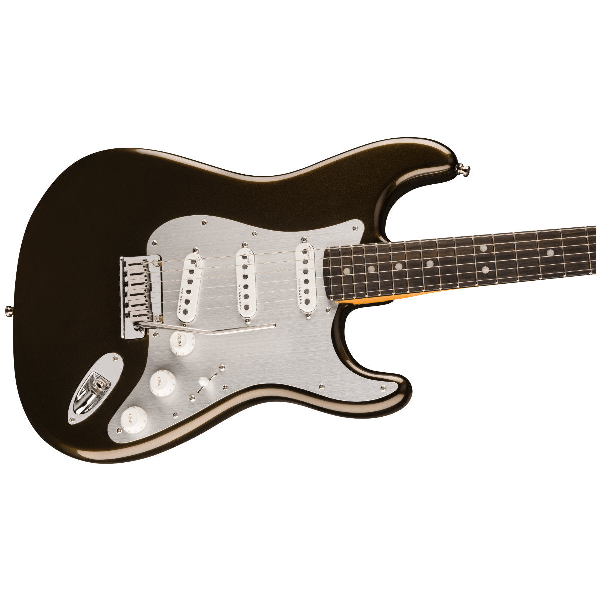 Under the hood, a trio of Ultra II Noiseless™ Vintage Strat® pickups deliver everything from sweet crystalline cleans to searing leads, all without a hint of hum. Fender's patented S-1™ switch cleverly unlocks additional pickup configurations for even more tonal variety. Additional road-ready features include 2-Point American Ultra synchronized tremolo with pop-in arm, polished stainless steel block saddles, cold rolled steel block, deluxe locking tuners, soft-touch knobs and 1-ply anodized aluminum pickguard.