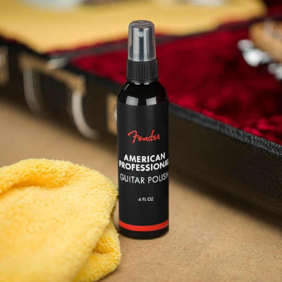 Maintain your instrument's shine and luster with this polish and cloth 2-pack. Featuring their American Professional 4oz polish and a Dual-Sided Super-Soft Microfiber Cloth, this combo pack is everything you need for basic care on even the most delicate of finishes. Their customized polish formula works to increase the gloss and depth of guitar finishes while resisting dust, sweat, grime and fingerprints. Their lint-resistant microfiber cloth has two sides for polishing and cleaning, guaranteeing stage-ready sparkle anytime.