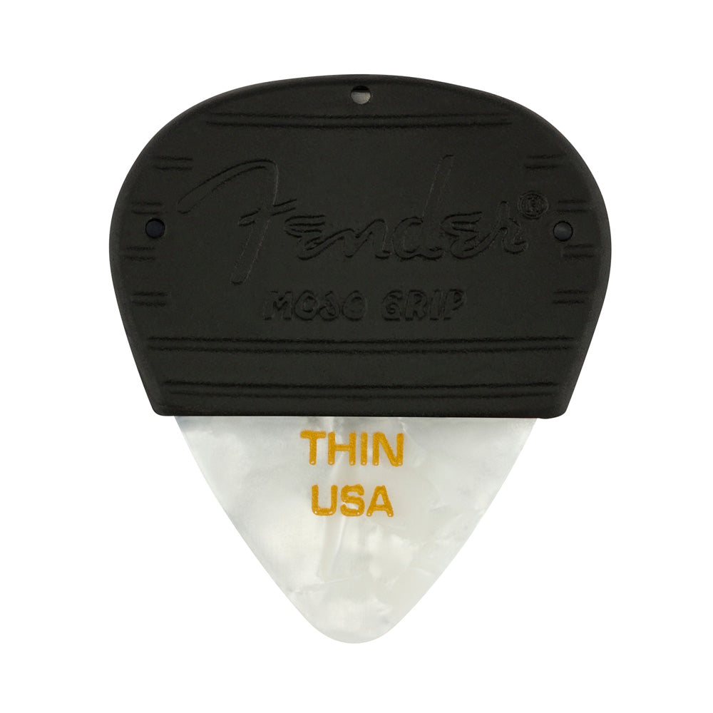 The Fender Mojo Grip™ is a nitrile rubber sleeve that provides a better gripping surface, and extra thickness to a 351 shape pick. The grips come with a Celluloid pick already in place. The best part of the Fender MojoGrip™ is that the grip is separate from the pick. If you wear down or break your pick, just carefully slide the pick out of the grip and replace it with another pick.