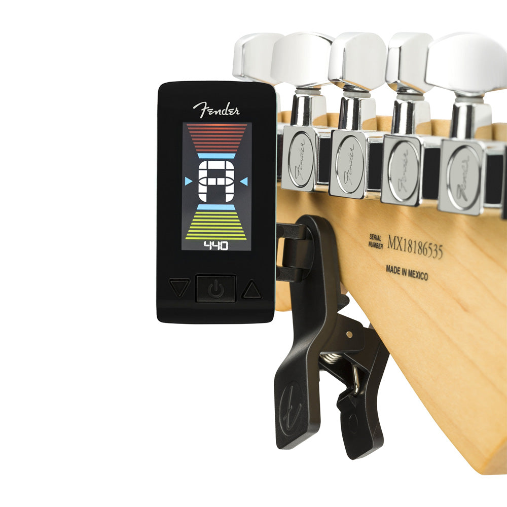 Engineered for players who need a compact, reliable and accurate tuning system, the Fender Original Tuner delivers on all of these criteria—plus a shot of signature style. The powerful vibration-based tuning engine ensures dependable precision, while the bright LCD screen with 360° angle-adjustable swivel is easy-to-read in any performance environment. Featuring Fender color-matched-to-guitar colors, this tuner is a sure-fire Fender lover's favorite.