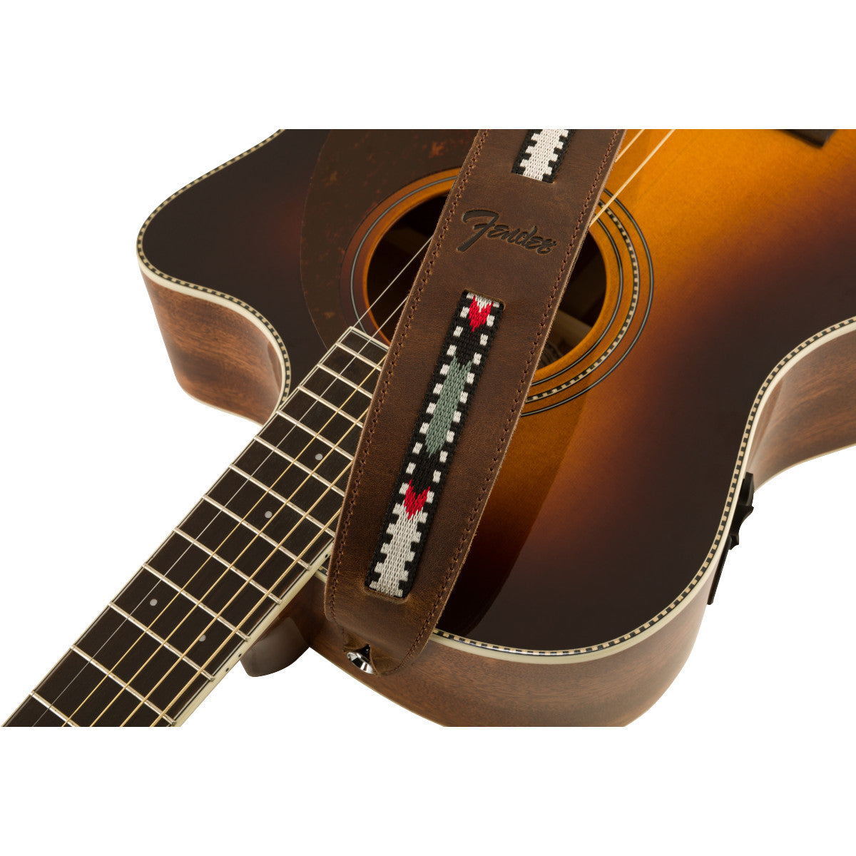 Designed to complement the state-of-the-art craftsmanship and vintage-inspired appointments found on Fender Paramount Series instruments, the Paramount Acoustic Strap offers classic style and long-lasting performance. A custom cotton hitch webbing imparts a vintage aesthetic while the premium leather takes on a soft, broken-in character as it ages.