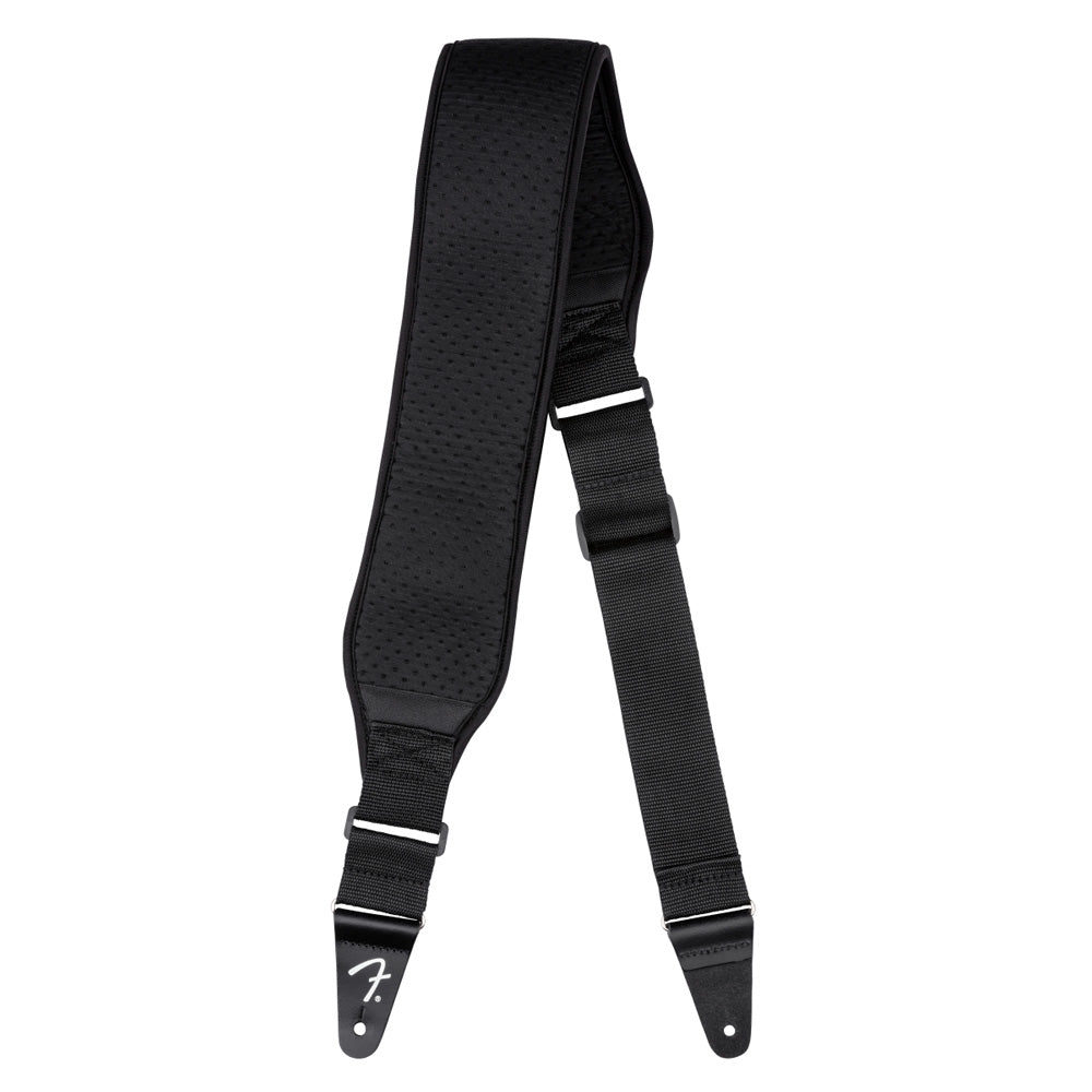 Designed for maximum comfort, the Fender® Neoprene strap is perfect for enduring long practices and performances. The large neoprene pad alleviates weight off your back and shoulders while providing heat relief through its mesh construction. Extra reinforced pads on the end tabs ensure long-lasting durability for use with heavier instruments.
