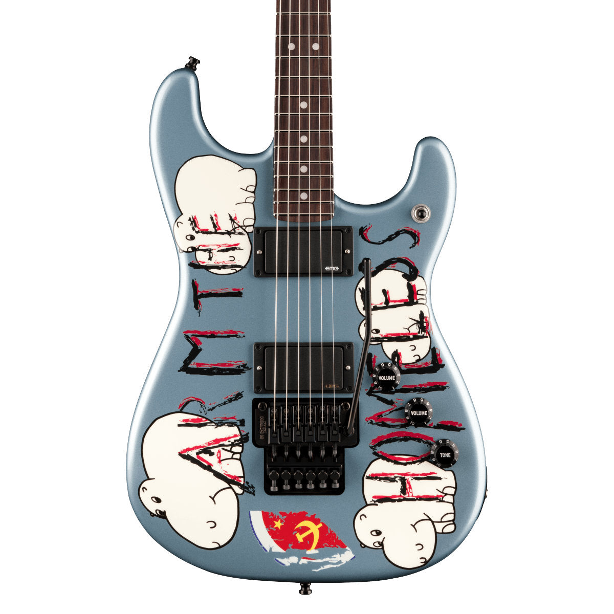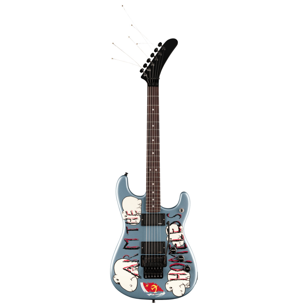 Refined through multiple iterations, Morello's 'Arm the Homeless' combines provocative custom graphics paired with a flat "C" shaped neck and iconic hockey stick headstock. Each element of this extensively modified instrument reflects years of development in pursuit of ultimate boundary-pushing versatility.