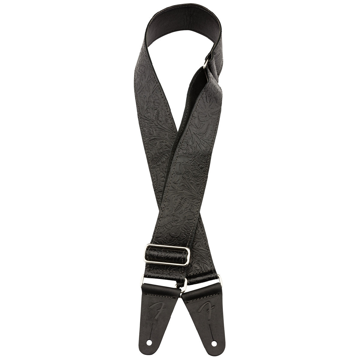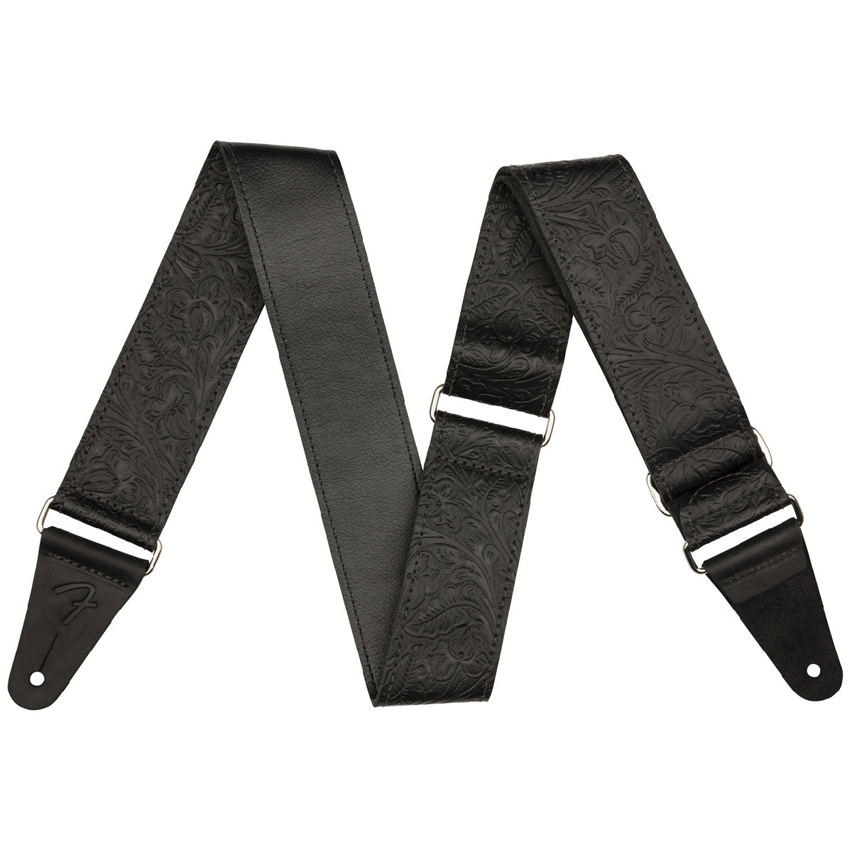 Inspired by the highly decorated straps favored by Western swing and country players, the Tooled Leather Strap brings classic style to any performance. Featuring an attractive floral pattern, this 2"-wide strap is designed for comfort, quality and aesthetics. The premium leather cone ends feature an embossed "F" logo to maintain the theme. The silver nickel slider allows the strap to adjust from 42"-52" in length to accommodate players of any stature.