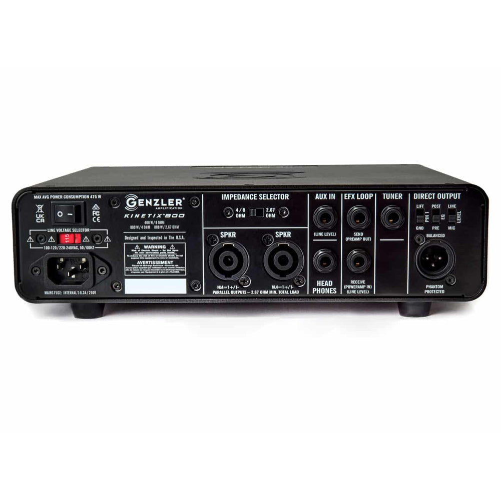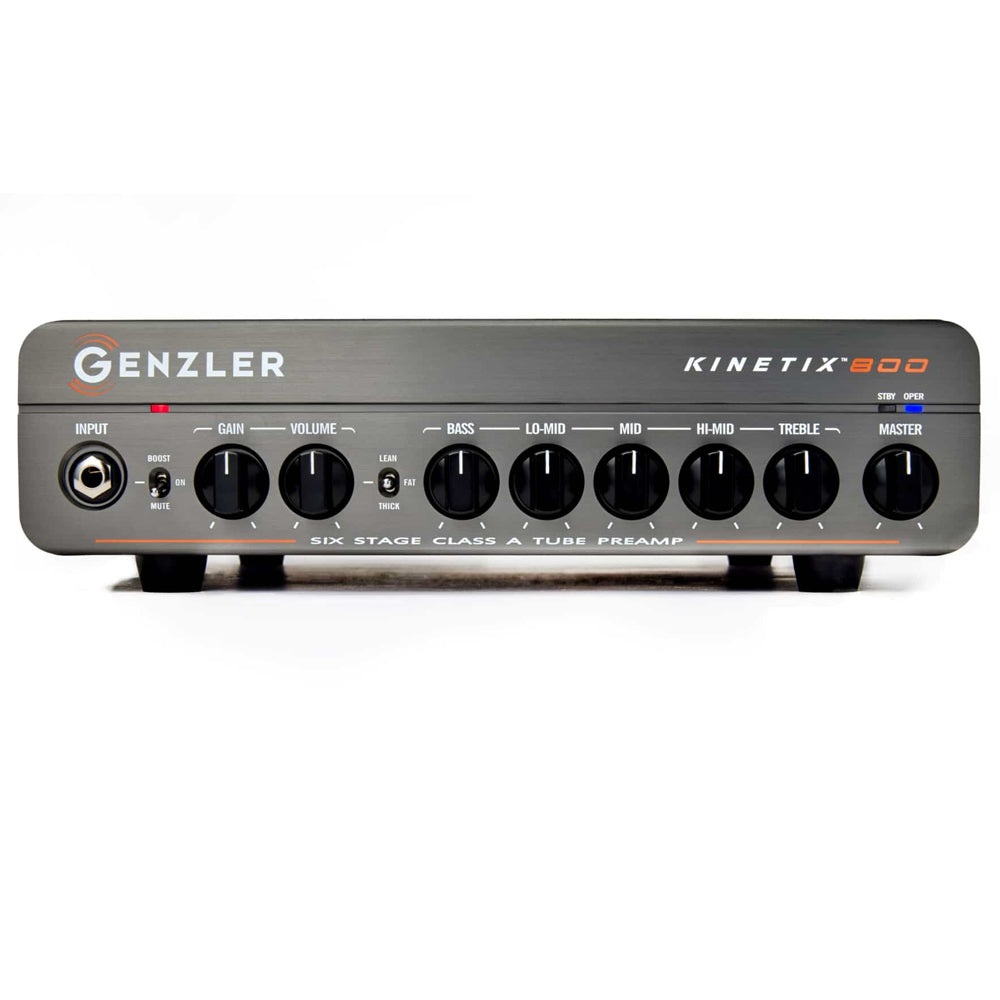 The circuitry and mechanical designs within the KINETIX™ 800 deliver an all-new platform in tube preamp, compact bass amplification design – exactly what players have come to expect from the Genzler® design team. From natural, pristine, quick responsive reproduction of the bass instrument to classic, vintage harmonic textures with “weighted feel to the notes”, the KINETIX™ 800 provides the tonal pallet needed to cover all of the bassist’s amplifier requirements. It is a simple to use, very musical amplifier, and is what a high-voltage tube preamp brings to the player’s dynamic interaction with their instrument through a world class bass amplifier.