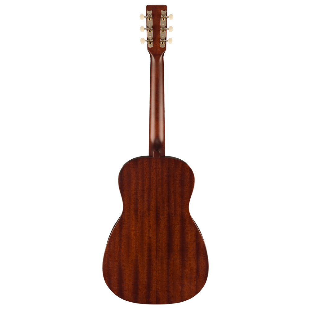 The X-braced body is crafted with select lightweight laminate tonewoods for an optimal balance of woody vintage tone and reliable durability, while the “C”-shape neck presents an inviting feel for hours of old-timey inspiration. The onboard Gretsch Deltoluxe magnetic soundhole pickup produces versatile electrified acoustic tone, providing added utility for live performance, recording, and effects pedals. Period-correct details such as a vintage-style pinned bridge, “G”-graphic pickguard, painted pinstripe purfling, 3-on-a-plate open-gear tuning machines and oversized dot fingerboard inlays combine for a nostalgic personality destined for any barnburner or jamboree.