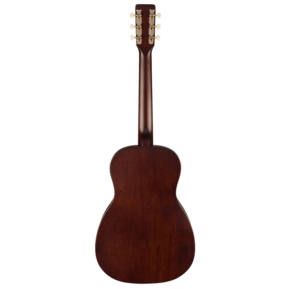 The X-braced body is crafted with select lightweight laminate tonewoods for an optimal balance of woody vintage tone and reliable durability, while the “C”-shape neck presents an inviting feel for hours of old-timey inspiration. Period-correct details such as a vintage-style pinned bridge, “G”-graphic pickguard, painted pinstripe purfling, 3-on-a-plate open-gear tuning machines and oversized dot fingerboard inlays combine for a nostalgic personality destined for any barnburner or jamboree.