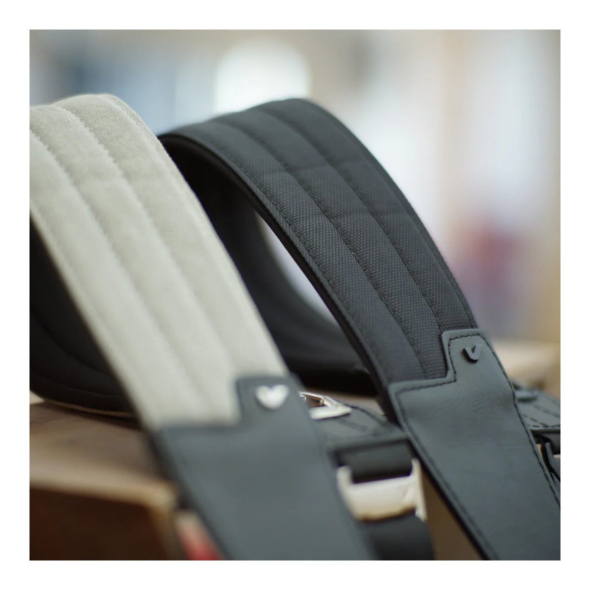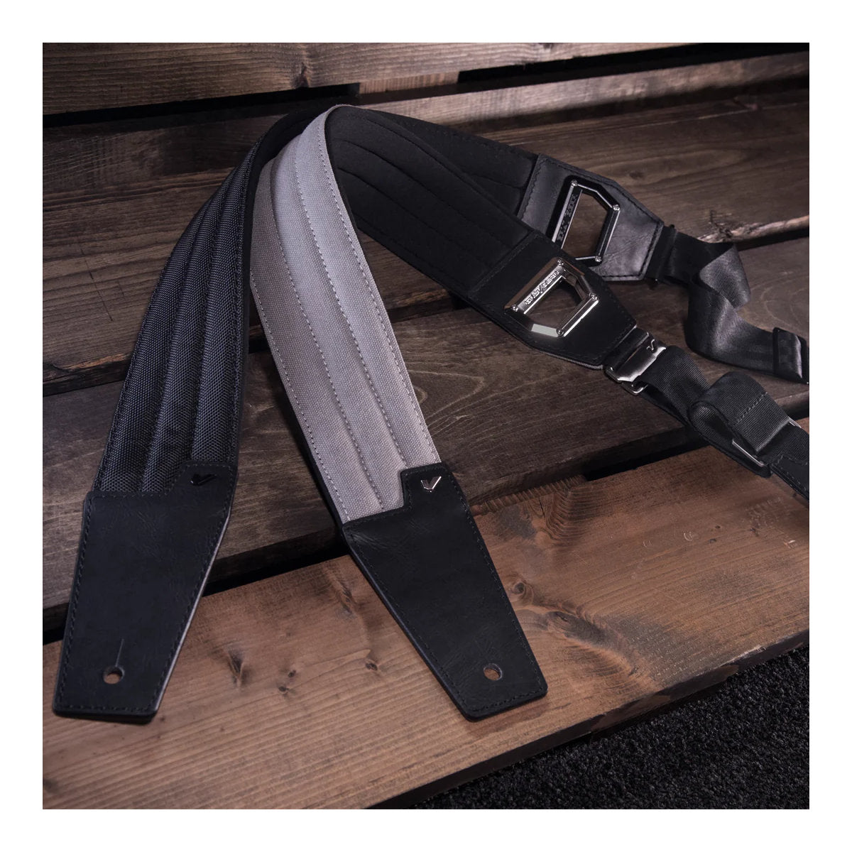 Stage-ready function meets comfortable fashion. The new FABRK Strap creates a classy statement with modern fabric textures, sleek metal hardware and trim, vegan-friendly faux leather tips, and a generously-padded 3" (70mm) wide neoprene underside for unmatched comfort. Its smooth adjustable seatbelt webbing features a custom G-hook fastener to easily switch strap lengths. Comes in Coal Black and Dune Gray, with standard (39-48") and extra-long (48-64") options.
