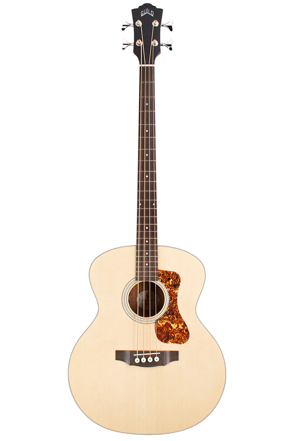 Guild pioneered acoustic bass guitar design in the mid-1970s with the B-50, which featured a jumbo body shape, arched mahogany back, and an easy to play, 30 3/4” scale length. Decades later, these vintage features are back with our B-240E, offering bassists a workhorse acoustic instrument with big tone that plays with ease. Built with a solid Sitka spruce top over an arched mahogany back and mahogany sides, the B-240E will hold its own in acoustic jams. It can also be easily amplified through an onboard Guild/Fishman Bass Sonitone Bass system. The B-240E features a pau ferro fingerboard and bridge, slim C shape neck profile, 1 5/8” bone nut and bone saddle, tortoiseshell pickguard, and a mother-of-pearl rosette.
