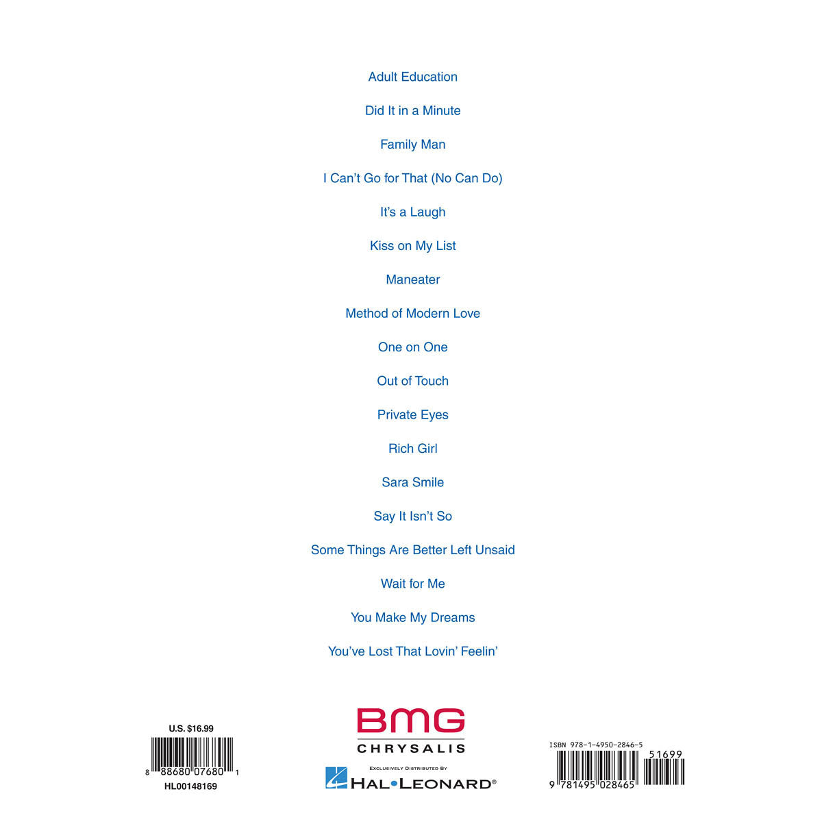 18 songs arranged for piano, voice and guitar matching the album compilation for these newly inducted members of the Rock & Roll Hall of Fame. Includes: Family Man • I Can't Go for That (No Can Do) • Kiss on My List • Maneater • Method of Modern Love • Out of Touch • Private Eyes • Rich Girl • Say It Isn't So • You Make My Dreams • You've Lost That Lovin' Feelin' • and more.