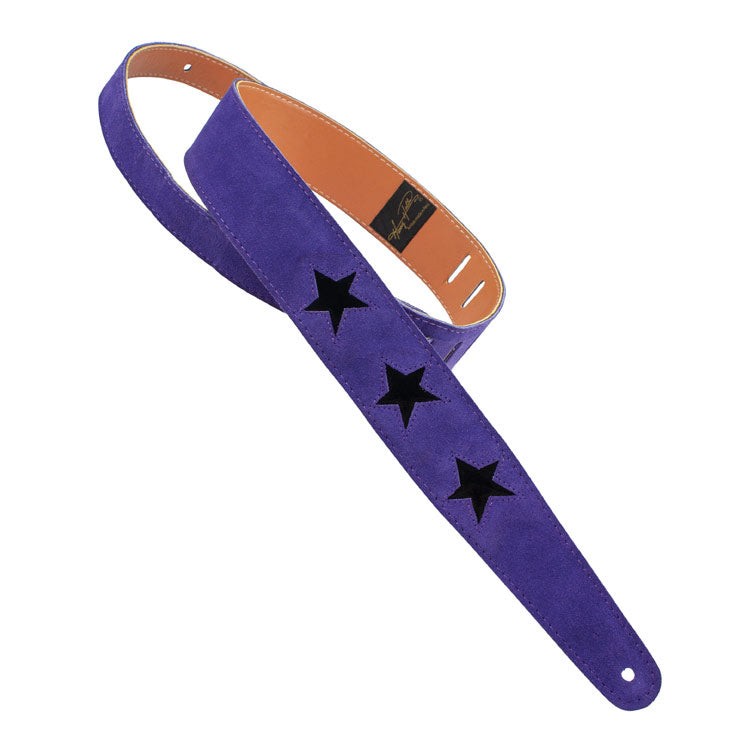 Henry Heller HPST-PB Star Series Leather 2 in. Guitar Strap - Purple Suede/Black