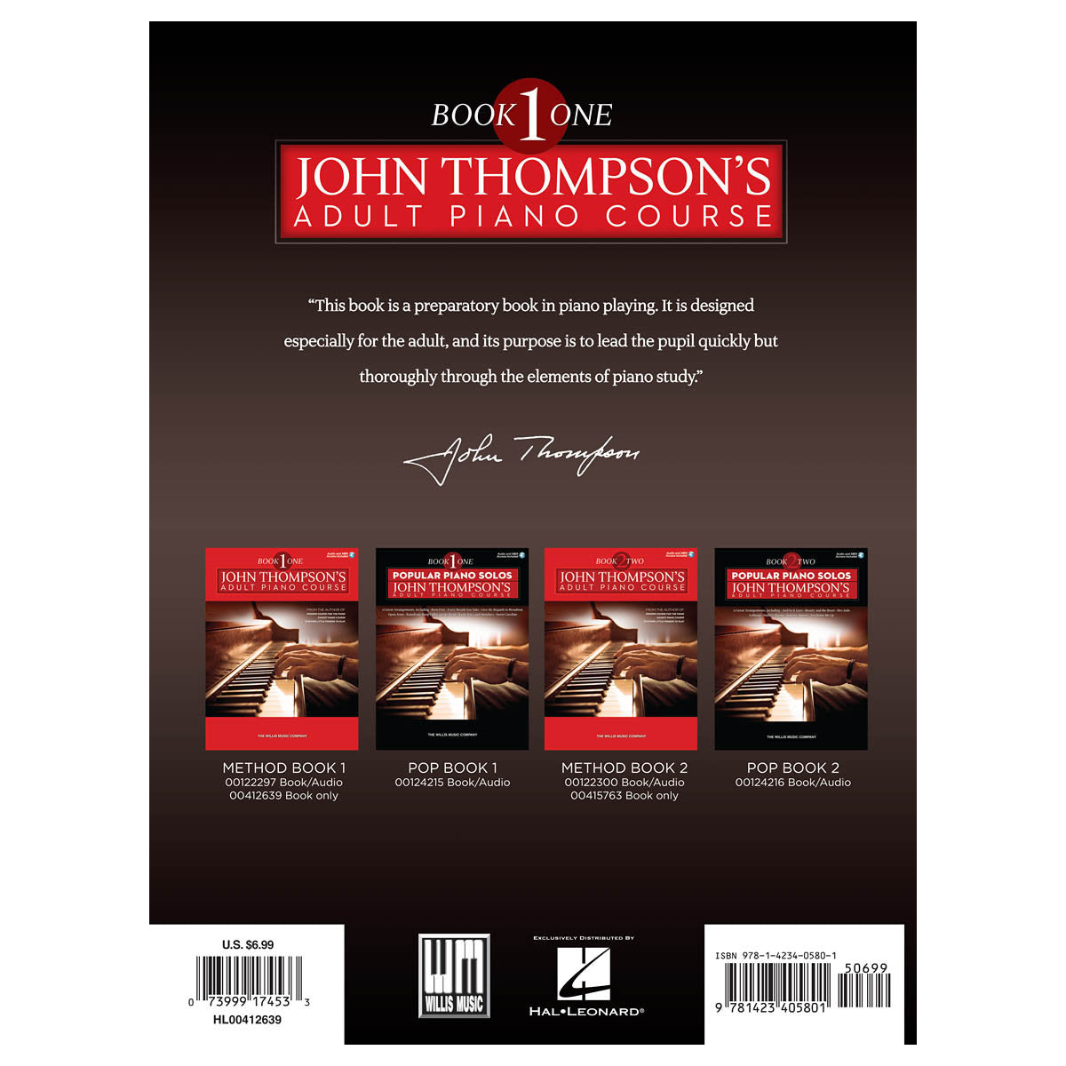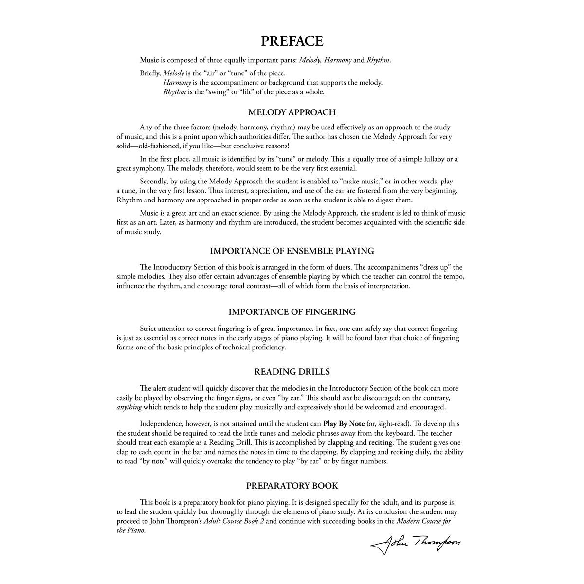 Recently re-engraved and updated, John Thompson's Adult Piano Course was compiled with the mature student in mind. Adults have the same musical road to travel as the younger student, but the study material for a mature student may differ slightly in content. These beloved books were written and arranged especially for adults and contain a wonderful mix of classical arrangements, well-known folk-tunes, and outstanding originals that many will find a pleasure to learn and play. Most importantly, the student is always encouraged to play as artistically and with as much musical understanding as possible. Book/audio versions allow access to orchestrated accompaniments online that can be downloaded or streamed.
