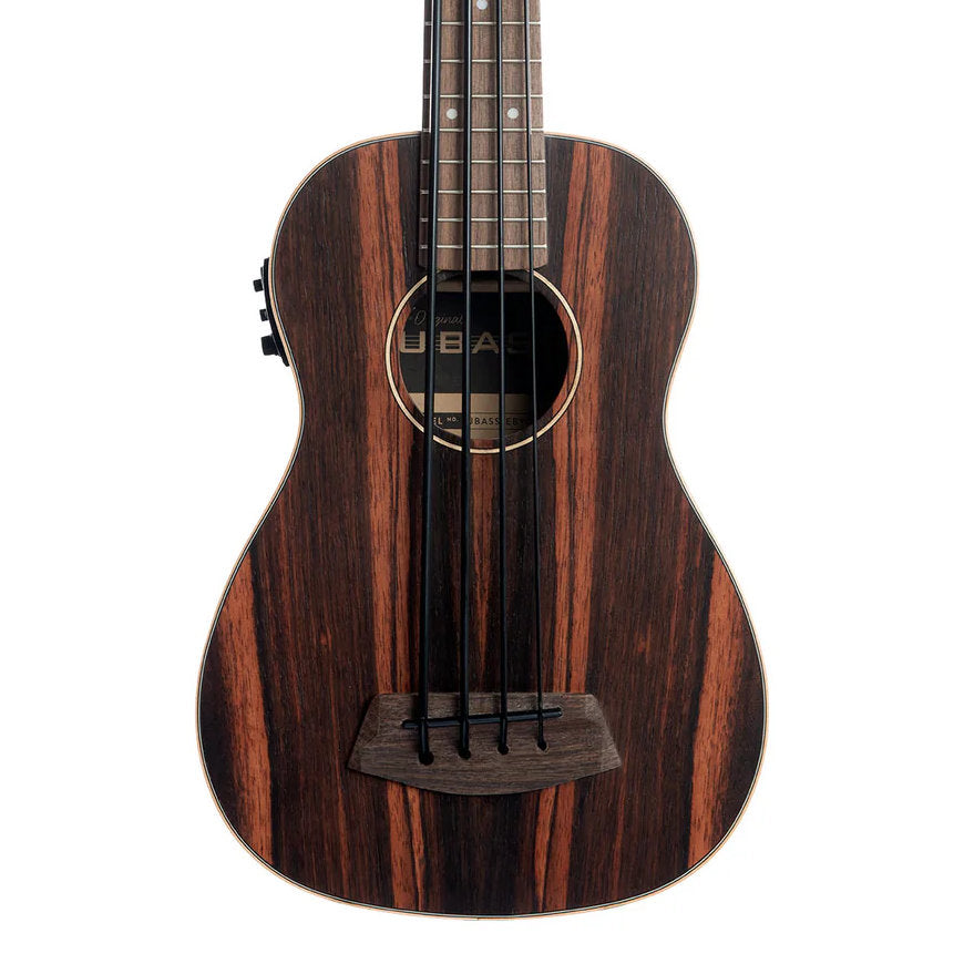 The beautiful Striped Ebony U•BASS® has a deep brown color with reddish-brown striping. One of the finest woods for instruments, Striped Ebony is a high-density wood that has superior tonal qualities. The light Maple binding creates a striking contrast with the dark Ebony body, that makes the variants in the striping stand out. Comes in a Fretted model with Proprietary Polyurethane Strings, Custom Hipshot® Ultralite Tuners, GraphTech TUSQ® Nut, Custom U•BASS® Pick-up, and a Deluxe Padded Gig Bag.